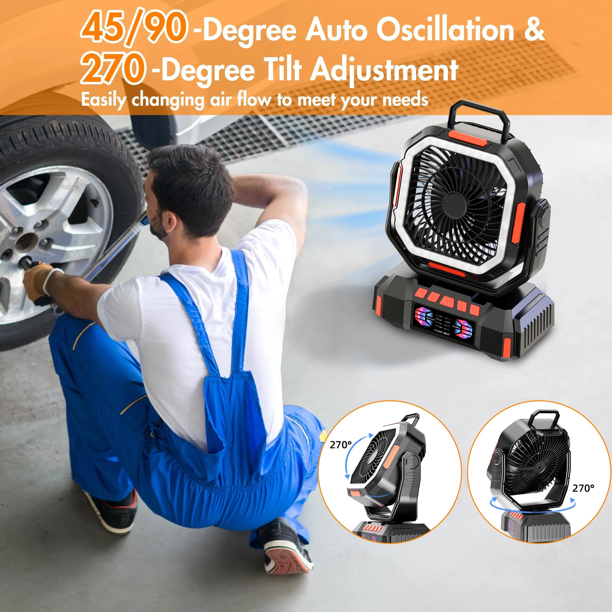 Camping Fan 40000mAh Battery Powered Fan Rechargeable 4 Speeds with LED Lantern - Portable Outdoor Tent Fans with Hanging Hook